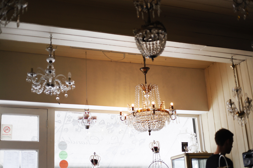 上の階がちょっとしたプライベート空間になってて、パーティーなんかも出来るんです。(あ、ちょっと狭かったけど)ちなみに、名前にもなってて、天井にいっぱい吊り下がっているシャンデリアは、購入可能だそうですよ~。