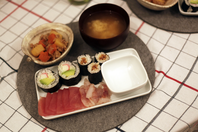 夜は、お刺身とお寿司、息子の大好物の肉じゃが。