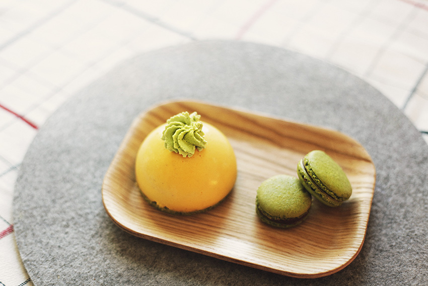I joined a baking lesson for this ‘Matcha (green tea) and Mango bavarois’. After the lesson I have tried myself several times and ta-da! here we go, this is the result! Looks nice doesn’t it.