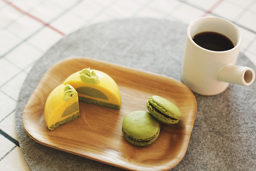 As the cake is made of Matcha, I thought my Serax cup will match the best because of its feel of Japanese-ness…. and I think I was right.
