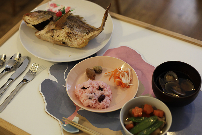 Okuizome is Japanese tradition to celebrate 100th day of birth and wish for healthy growth go teeth and happy eating (I find this very Japanese).